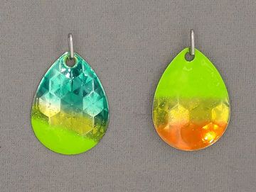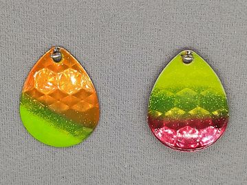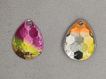 We began building and field testing our Crystal Harnesses in 2013. During field testing we discovered the glass crystal harnesses out produced any plastic bead combination we put them up against. Even in high sun/flat water conditions when the fish shut down on the standard meat rig, the glass crystal harness kept producing due to the flash of the crystals. The problem we encountered was the crystal beads would destroy the finish on the inside of the blades. The evolution of our custom harnesses continues with our custom powder coated blades which allows them to stand up to the abrasive glass crystals. Our 2019 series is an extensive line up of premium high gloss finished Colorado blades. Numerous combinations also include reverse inside color blade tipping for additional color contrast. The combination of the high gloss contrasting blade finishes, against the light reflection of the crystals is a big reason for our continued success. Reel Rumors primarily runs #4 blades on Saginaw Bay, however we have added additional sizes in both #3’s and # 5’s due to customer request.